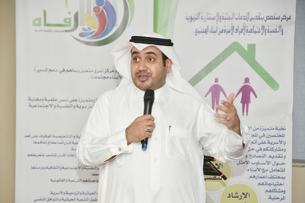وأكد الأخصائي النفسي صالح البراك الذي تناول الجانب النفسي والاجتماعي للحياة الزوجية، أن المقبلين على الزواج من الجنسين بحاجة لاكتساب مهارات الحياة الزوجية لتحقيق الأمن الأسري والمجتمعي، لافتاً إلى غفلة الكثير من الأسر عن الإعداد للزواج من ناحية العلاقات الاجتماعية وكيفية تعامل كل طرف مع صاحبه، مما يؤدي إلى ارتفاع معدل الطلاق في المجتمع.الدكتور محمد سنبل - رفاه للدراسات والتنمية الأسرية
