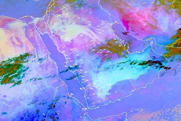 بثّ النظام الآلي للإنذار المبكّر، اليوم، ما وصفه بآخر صورة للأقمار الصناعية توضح استمرار التدني في الرؤية الأفقية على منطقتَي الرياض والشرقية، والمتوقع استمرارها إلى مساء اليوم.