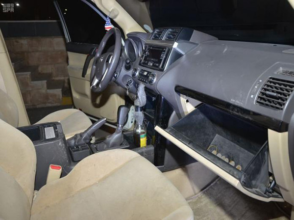 وقال عثر من تفتيش المركبة من نوع ”برادو“ التي استخدمها الجناة على قنابل مولوتوف واتضح أن السيارة مسروقة من مدينة الدمام بتاريخ 1437/7/20 هـ ، وبُدِلتْ لوحاتها من العناصر الإرهابية بالقطيف مع لوحات السيارة، من نوع جيب ”فورشنر“، التي كان يقودها المطلوب مصطفى علي عبدالله المداد عند متابعته من قوات الأمن وتبادل إطلاق النار معه والمعلن عنه بتاريخ 1438/6/11 هـ .