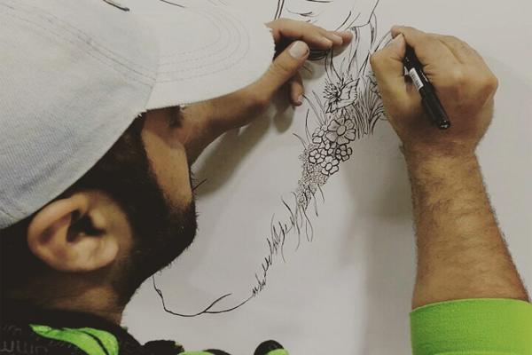 وتحدث عن سبب كثرة استخدامه للرسم بقلم الحبر الأسود، ”خلال فترة دراستي بالكلية وفترة عملي التي كانت خارج منطقتي، كان من الصعب علي التنقل بجميع أدواتي الفنية“، مشيراً إلى أنه توّلد لديه حس تقديس أقلام الحبر حينما أدرك أن بإستطاعته صنع الجمال من شيء بسيط فأصبحت أقلام الحبر رفيقة دربه ”ماكنت بحاجته لصنع أي عمل من سكتش بسيط إلى عمل احترافي سوى قلم وورقة، وجدت أن أقلام الحبر هي خير رفيق لي في أي وقت وأي مكان لسهولة الحصول عليها ورخص ثمنها“.