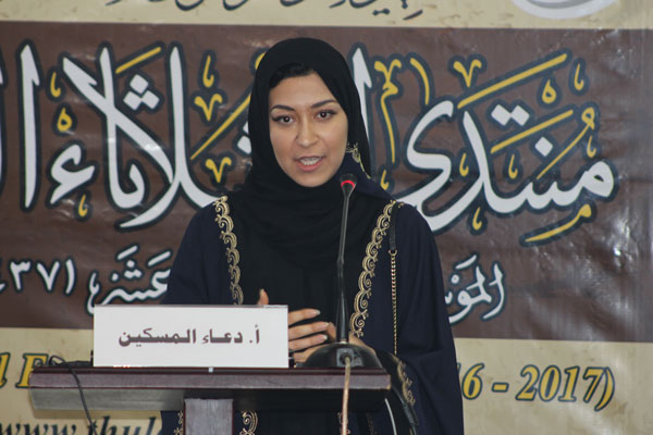 ولاقت أعمال المسكين؛ اهتمام حضور منتدى الثلاثاء الثقافي في الحوار الذي نظمه بعنوان «العنف في المجتمع.. المسببات والاضرار» والذي شهد حضور نخبة من شخصيات المجتمع.