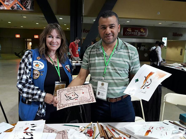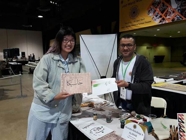 وبين العرب، أن مشاركته كانت بهدف إيصال ثقافة الخط العربي وأدواته للمجتمع الغربي.