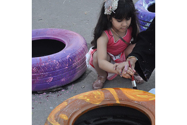 تزين أرض المهرجان بمواد مستهلكةوقالت رئيسة الأركان الفنية في المهرجان حوراء الشاخور: ”هدفنا الإستفادة من الأشياء المستهلكة وتحويلها الى مناظر جميلة تُضيف إلى المهرجان طابعًا حيويًا“.