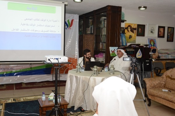 وعرّف إدارة الوقت بانها قدرة الشخص على استخدام الوقت لانجاز المهام المنوط بها في الوقت المحدد، ناصحا الطلاب بضرورة وضع جدول والعمل على تطبيقه، واصفا مهارة تنظيم الوقت ”بورشة عمل“.