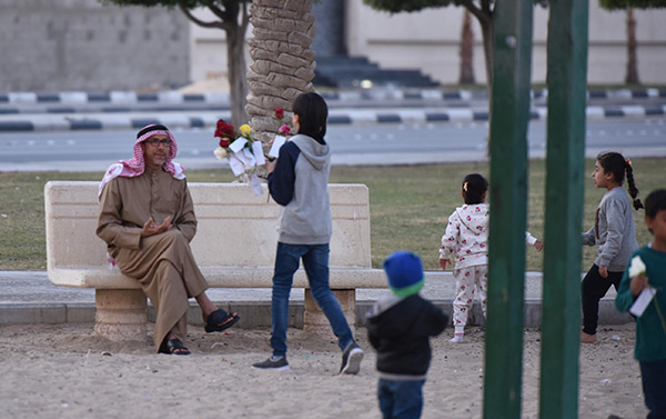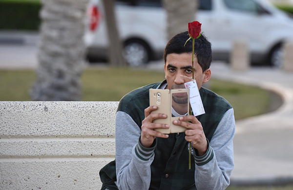 بالصور.. ”فتية آمنوا“ يوزعون الورد بمناسبة مولد النبي محمد في كورنيش القطيف