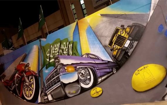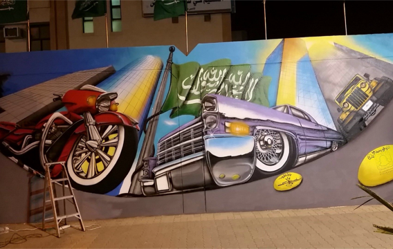 وذكر الغريب في حديثه مع «جهينة الإخبارية» أنه شارك مع مجموعة من الرسامين المهتمين برسم الجداريات من عدة مناطق بالمملكة، حيث اختار أن يرسم مجموعة من السيارات.