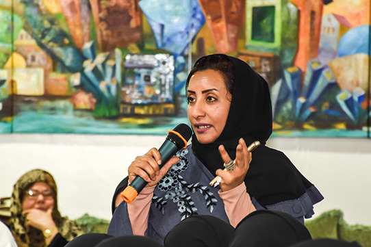 وشددت في الأمسية التي حضرها جمع كبير من النشطاء والمثقفين على ضرورة التحلي بالروح الوطنية المخلصة، مشددة على أهمية الجلسات النقاشية الهادفة التي تسعى لجمع المطالب والمطالبة بها وفق القوانين.