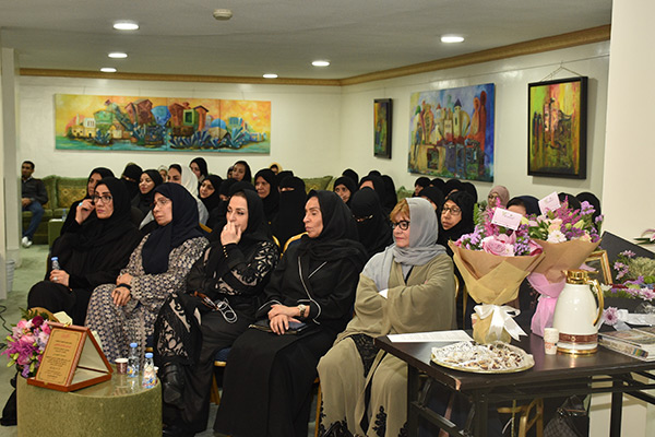 العيوني والذي كرمها منتدى الثلاثاء الثقافي لكونها أحد السيدات اللواتي ناضلن من أجل حقوق المرأة، أهدت تكريمها إلى صديقتها التي شاركتها العمل الحقوقي الناشطة وجيهة الحويدر، في صورة جسدت معاني الوفاء والتقدير.