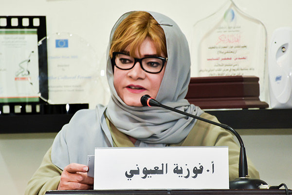 وكرم المنتدى الناشطة في مجال حقوق الإنسان فوزية العيوني والتي استعرضت تجربتها في العمل الحقوقي منذ طفولتها.