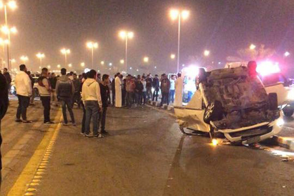 بالصور.. وفاة 3 شبان اثر انحراف ”سيارة“ اثناء جلوسهم في كورنيش القطيف