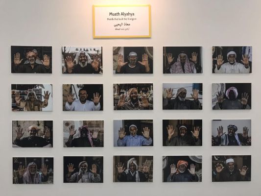 أما معاذ اليحيى فكان عمله ”أيادي بَنَت المملكة“ وهو عبارة عن صور لمواطنين في مهن مختلفة ويصورهم وهم رافعي الأيدي دلالة على اليد العاملة التي بنت المملكة.