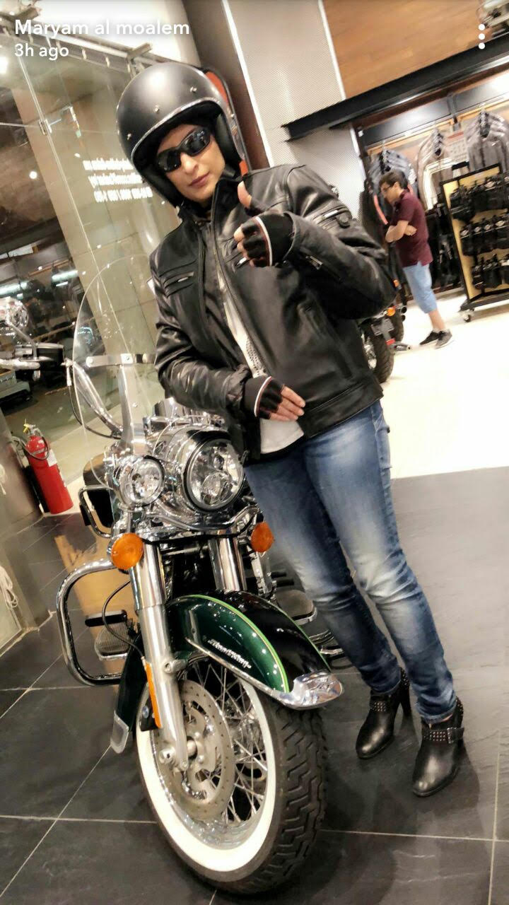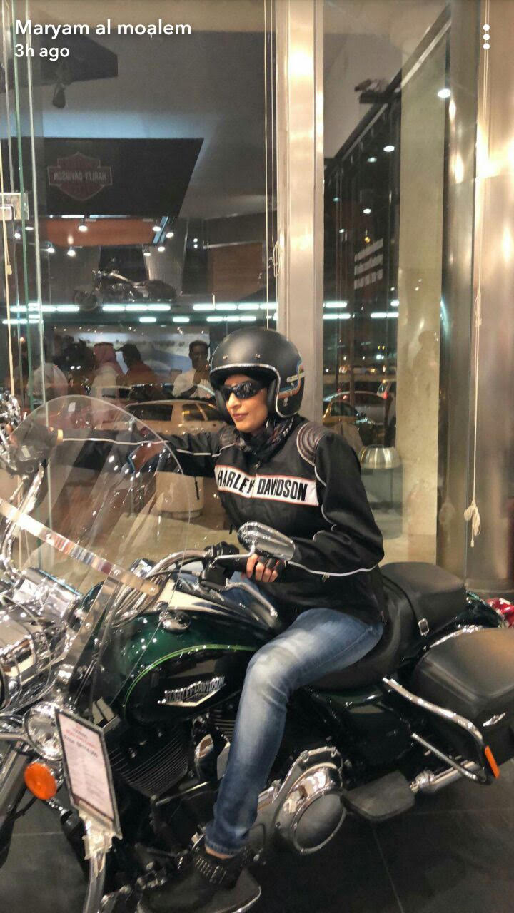 وتضيف المعلم توصلت مع فرع شركة هارلي ديڨيدسون بمدينة الظهران، وتعرفت على عالم الدراجات النارية، بالإضافة الى تعرفها على شركة هارلي التي تعتبر نادي اجتماعي له أعضاؤه ومحبوه وله العديد من المساهمات الإنسانية والتوعوية في المجتمع.