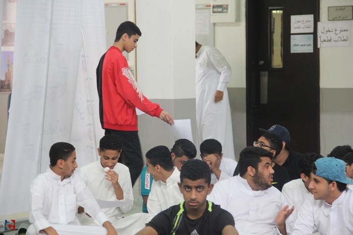وتعرف الطلاب على متلازمة داون، وهل هي وراثية ام لا؟، وماهي اسباب وأعراضها، وقام فريق همم التطوعي وهم من طلاب المدرسة بتقديم مطويات توعوية.