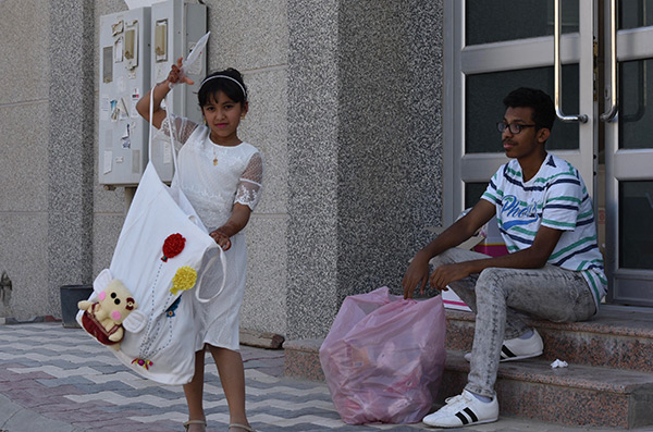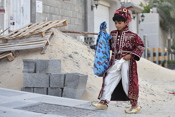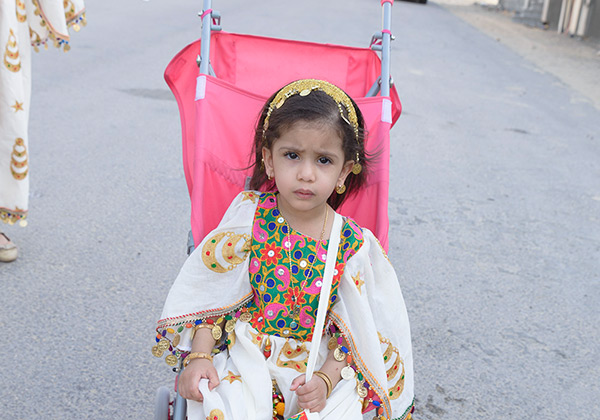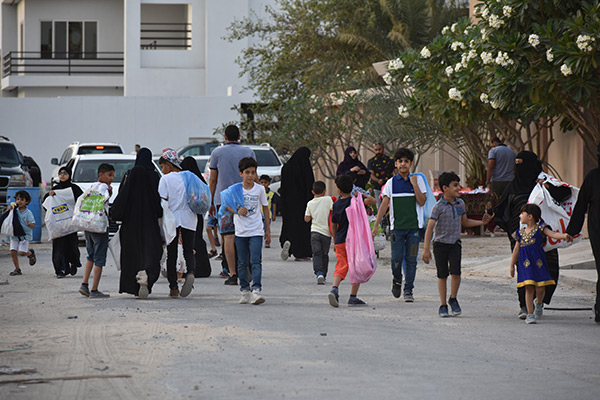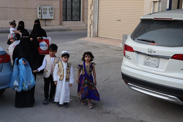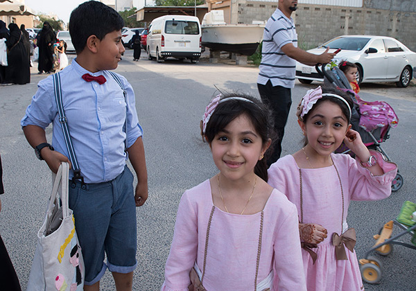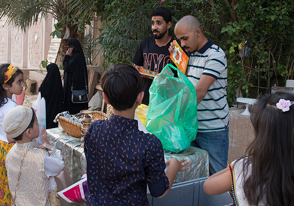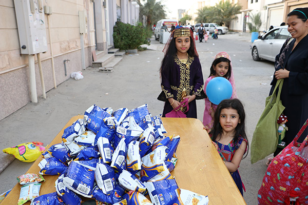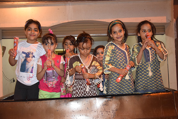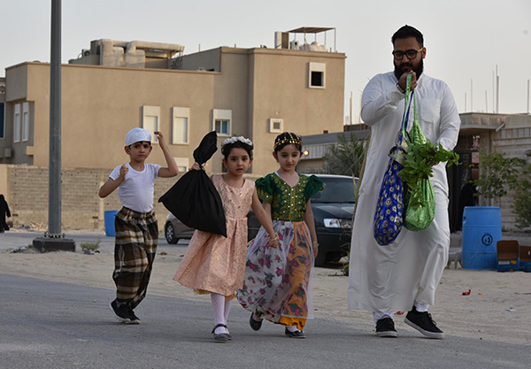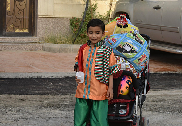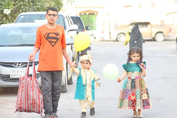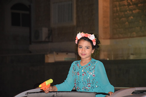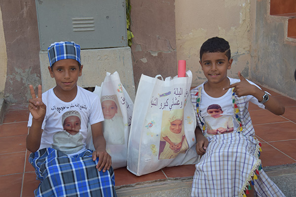 الأطفال الذين رددوا اهازيج شعبية خاصة بالمناسبة حرص الكثير منهم على ارتداء الملابس التراثية فيما حرصت العوائل على توزيع الحلوى عند أبواب منازلهم.