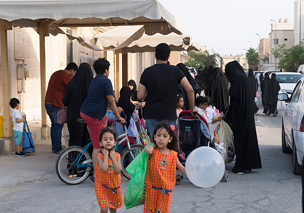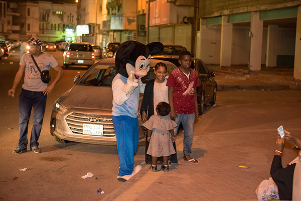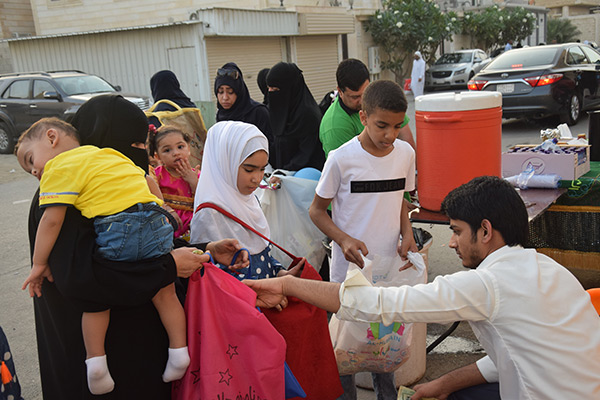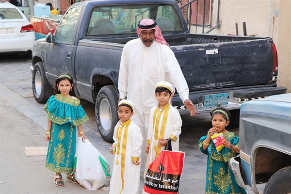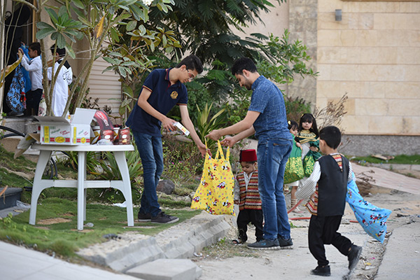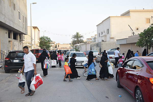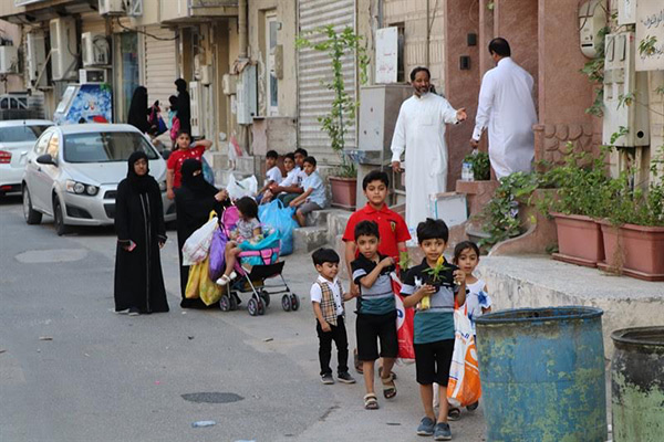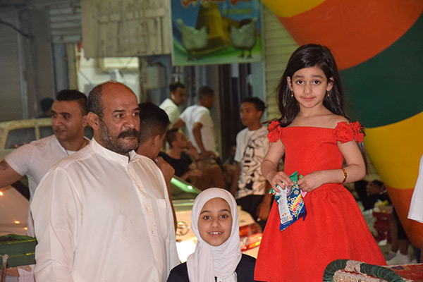 واكتظت أحياء المناطق الشعبية بالحضور من مختلف الأعمار حيث يقبل عليها الضيوف من كل مكان بسبب تقارب بيوتها وأكثرها تفتح أبوابها لتقديم الهدايا وهو ما يساعد على جمع أكبر كم من التوزيعات والهدايا.