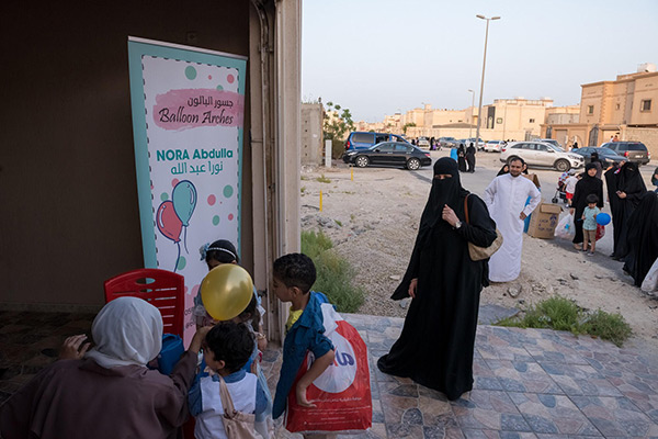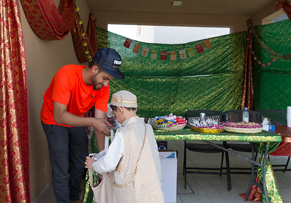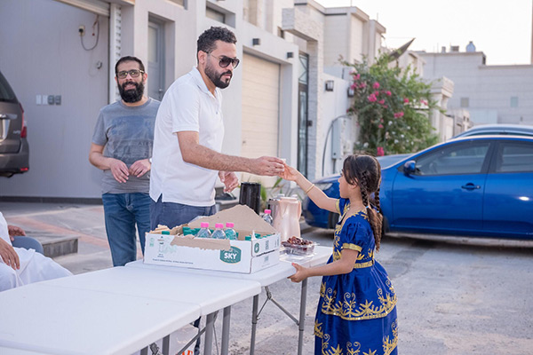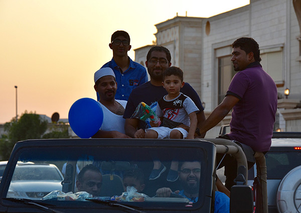 وشهدت الاحتفالات التي تستمر حتى الساعة الثانية عشر بعد منتصف الليل منافسة كبيرة بين الأحياء والقرى من خلال استقبال الضيوف وابتكار طرق لتقديم الهدايا والتوزيعات وأيضاً بناء مضائف تراثية وشعبية تعبر عن روح المناسبة.