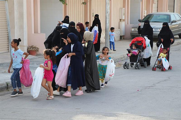 وبادرت اللجان التطوعية في مختلف مدن وقرى المحافظة لتنظيم حركة السير حيث ارتدوا سترات لتميزهم الفرق المنظمة وسعوا لعملية تنظيم حركة المرور بين السيارات ومئات الأطفال والنساء خلال تنقلهم بين الأحياء.
