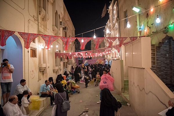 تزينت مدن وبلدات محافظة القطيف بمختلف أشكال الزينة منذ عصر اليوم الثلاثاء احتفالاً بذكرى النصف من شعبان ذكرى مولد الإمام الثاني عشر المهدي المنتظر والمسماة شعبياً ب ”الناصفة“ و”القرقاعون“.