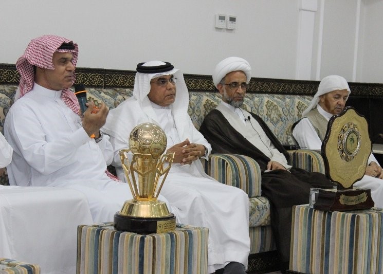 وفي نهاية الاستقبال أهدت إدارة نادي مضر واللجنة درع الدوري والكأس لسماحة الشيخ تقديرا منهم لجهوده، ووجهت له دعوة لحضور حفل التكريم المزمع إقامته بتاريخ 27 ذو الحجة في صالة شهاب بالقديح.