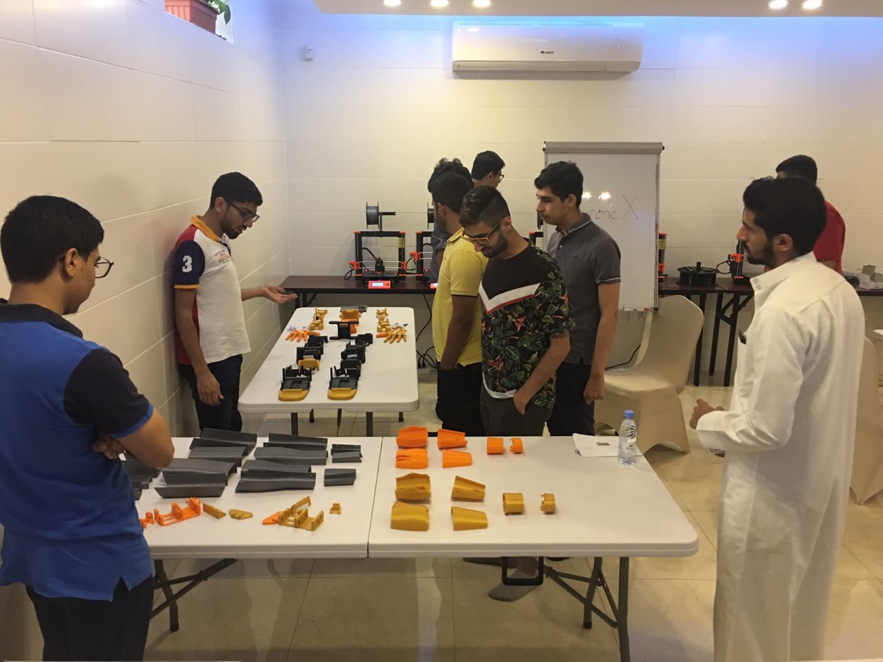 وبين أن المشروع يتكون من عدة مراحل هي: المرحلة الأولى: التخطيط للمشروع وآلية العمل وتم الانتهاء منها بنجاح، مرحلة ثانية وهي: تصميم ثلاثي الأبعاد للروبوت وقطع الهيكل وهذه المرحلة أيضاً تمت بنجاح، مرحلة ثالثة: طباعة القطع باستخدام طابعات ثلاثية الأبعاد التي استغرقت طباعتها اكثر من خمسمائة ساعة متواصلة وقد تم تجريب القطع والتأكد من صحة التصاميم والقطع بعد الانتهاء من طباعتها.