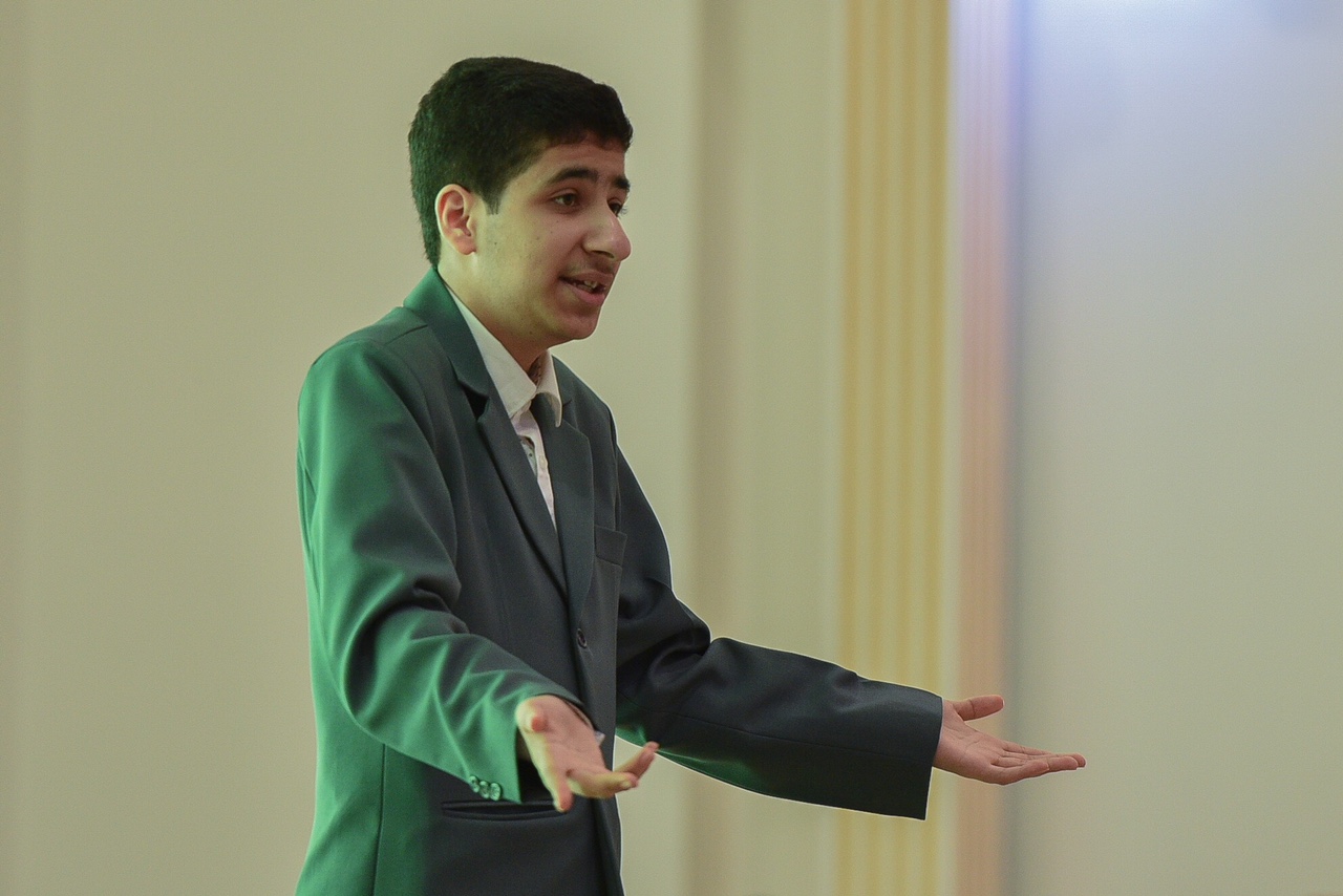 وألقى كلمة الطلاب الطالب المتميز حيدر علي شاكر الجراش دعا فيها إلى وقفة إجلال للآباء والأمهات ومن ثم للمعلمين ولكل من ساهم في وصولهم اليوم، ولكل من ساهم في هذا الحفل البهيج