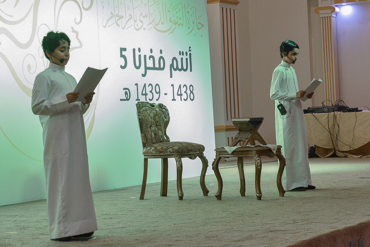 حفل جائزة التفوق الدراسي بأم الحمام - أنتم فخرنا 5 - تكريم اوأعرب المشهد أن المفاجأة السعيدة في هذا العام ومع رفع معايير القبول والترشيح للجائزة بهدف تشجيع الطلاب والطالبات على بذل جهد أكبر مع علمنا بأن لديهم طاقات جبارة وتحتاج فقط للاستثارة والتنشيط ليصعدوا بمستوياتهم ويدخلوا في دائرة التميز، كان الإنجاز رفع العدد ليصل إلى ما يقارب 400 طالب وطالبة من المتفوقين والمتميزين والموهوبين في أنتم فخرنا الخامس.