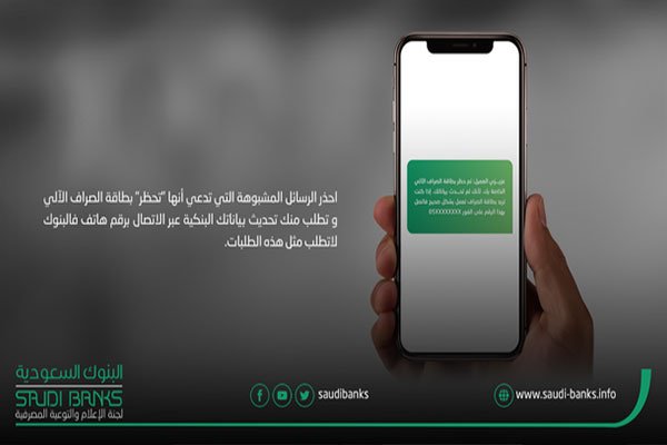 حذرت البنوك السعودية، أمس «الثلاثاء» من ”رسائل مشبوهة تزعم حظر بطاقة الصراف الآلي، وتطلب تحديث البيانات البنكية، عبر الاتصال برقم هاتف“.