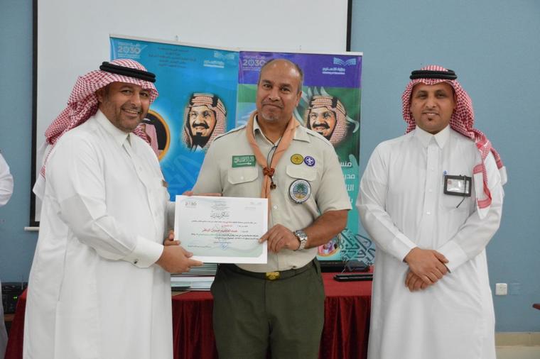 وحضر الحفل المساعد للشؤون التعليمية علي الشهري، ورئيس وحدة نشاط الطلاب بالمكتب خالد السعود، ومشرف الشعبة محمد العمري، وأعضاء مجلس نشاط الطلاب، وقادة المدارس، ورواد النشاط الطلابي، وممثلي الجهات والمدارس الداعمة والمشاركة في المعرض المصاحب لحفل اليوم الوطني.