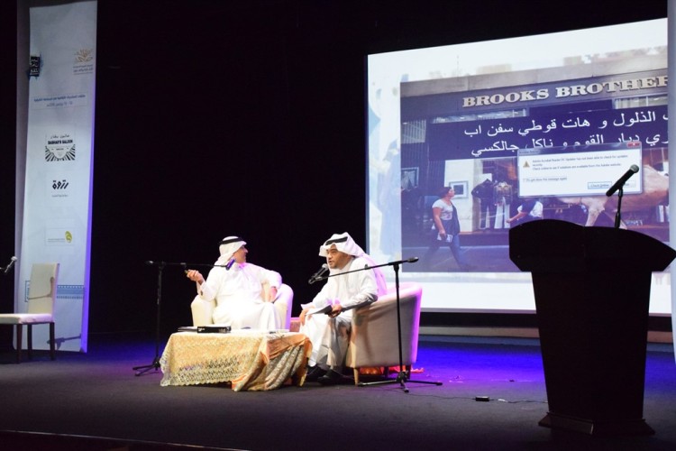 وطرح الخليفة مجموعة من الحكايات والنوادر الشعبية، كما تطرق لتأثير التقنية على الادب الشعبي والذي يكون متفاعلا تارة فيتداول وينشر ما يحمله الفلكلور من حكايات واغاني شعبية، فيما يعمل في بعض الاحيان على تحجيم تلك الثقافة الشعبية القديمة من خلال إنشغال الجيل الحديث بالتطبيقات والالعاب الالكترونية إضافة لمواقع التواصل الاجتماعية التي غيرت الكثير من المفاهيم في السنوات الاخيرة.