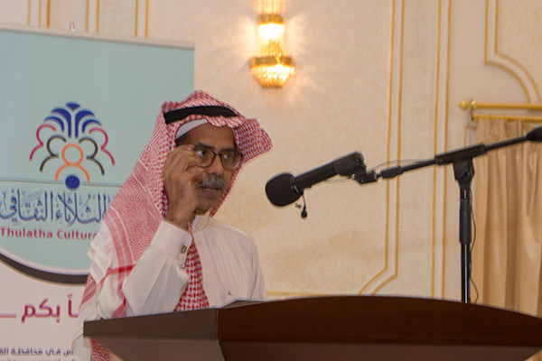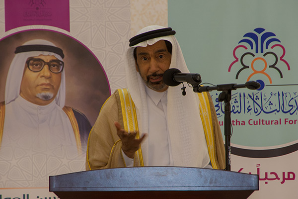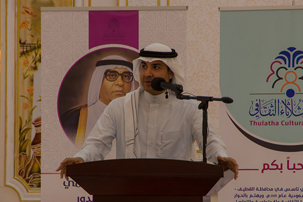 بدوره أشاد منصور القطري في كلمته «بمنهجِ تكريمِ» الأحياءِ من رموزِ الفكرِ والعطاءِ والإبداع، هذا النهج الذي بدأ يسود وينتشر في المجتمع في الآونة الأخيرة باعتباره تعبيراً عن شعورٍ شعبيٍ غامرٍ بالرضا والفخر والعرفان تجاه المحتفى بهم.