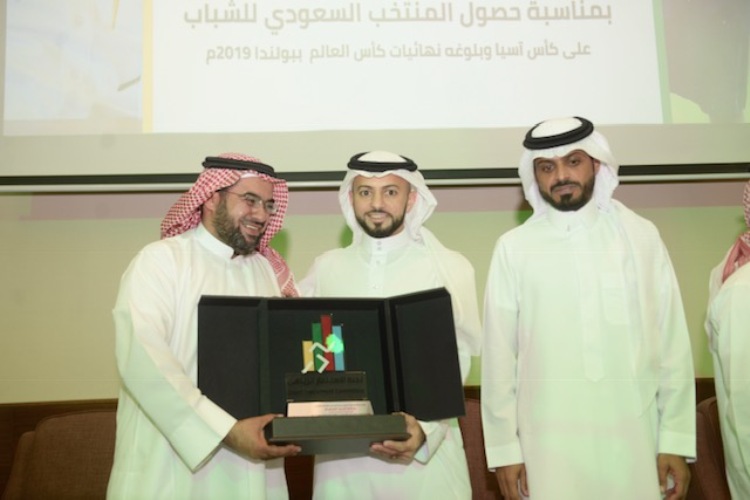 احتفلت لجنة الاستثمار الرياضي بغرفة الأحساء برئاسة أحمد الراشد مساء الأثنين بالمدير الفني للمنتخب الوطني للشباب خالد العطوي، وذلك بعد تحقيق المنتخب الوطني لقب كأس آسيا تحت 19 سنة وبلوغ ”الأخضر“ الشاب لنهائيات كأس العالم ببولندا.