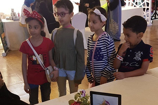 ووابدت سعادتها لتجاوب الزائرين من جميع الفئات مع الركن واوضحت باحتواء الركن على مبيعات بسيطة ”بسعر رمزي“ لصالح جمعية العطاء النسائية.