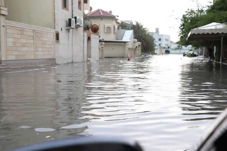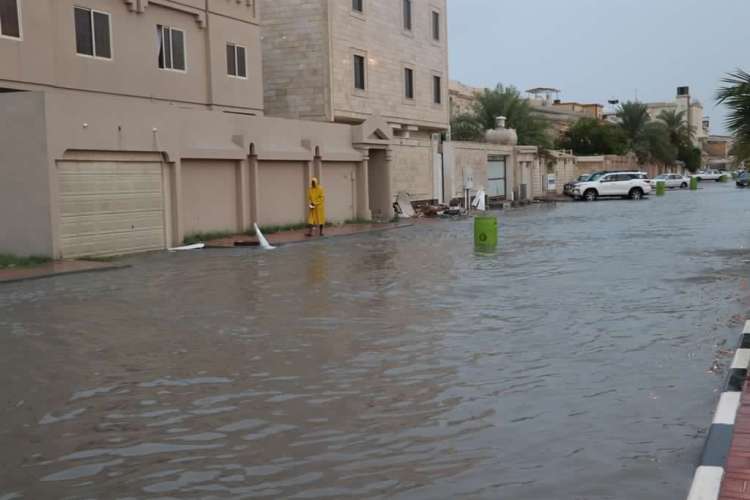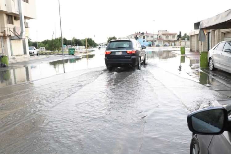 سحب رعدية تغرق شوارع القطيف بمياه الأمطار