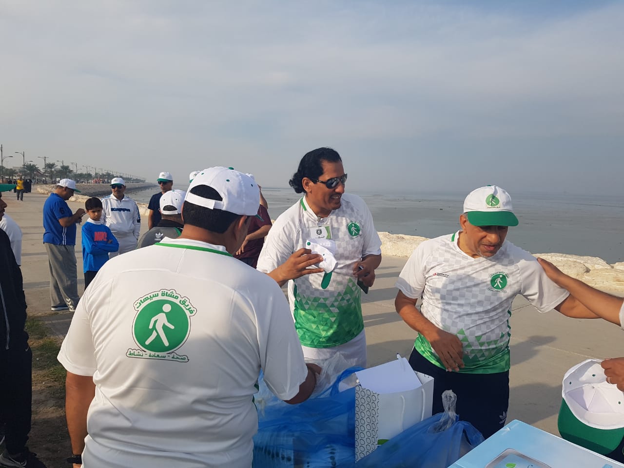 شارك أكثر من 320 مشارك من الكبار والصغار في فعالية اليوم العالمي للمشي، والذي نظمه فريق مشاة سيهات في الواجهة البحرية بسيهات ”الغدير“.