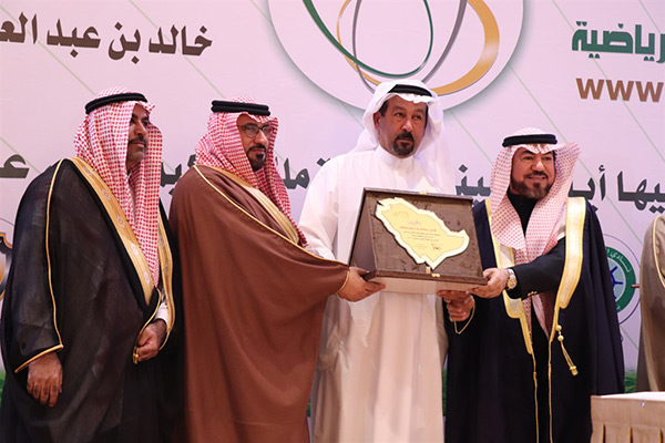 وأضاف ”اسمحوا لي باسمي وبالنيابة عنكم أن أهدي هذه الإنجازات المباركة إلى خادم الحرمين الشريفين الملك سلمان بن عبدالعزيز، وولي عهده الأمير محمد بن سلمان بن عبدالعزيز، وللقيادة الرشيدة متمثلة بأمير المنطقة الشرقية سعود بن نايف بن عبدالعزيز، ونائبه الأمير أحمد بن فهد بن سلمان بن عبدالعزيز، وللامير عبدالعزيز بن تركي بن فيصل بن عبدالعزيز رئيس مجلس إدارة الهيئة العامة للرياضة“.