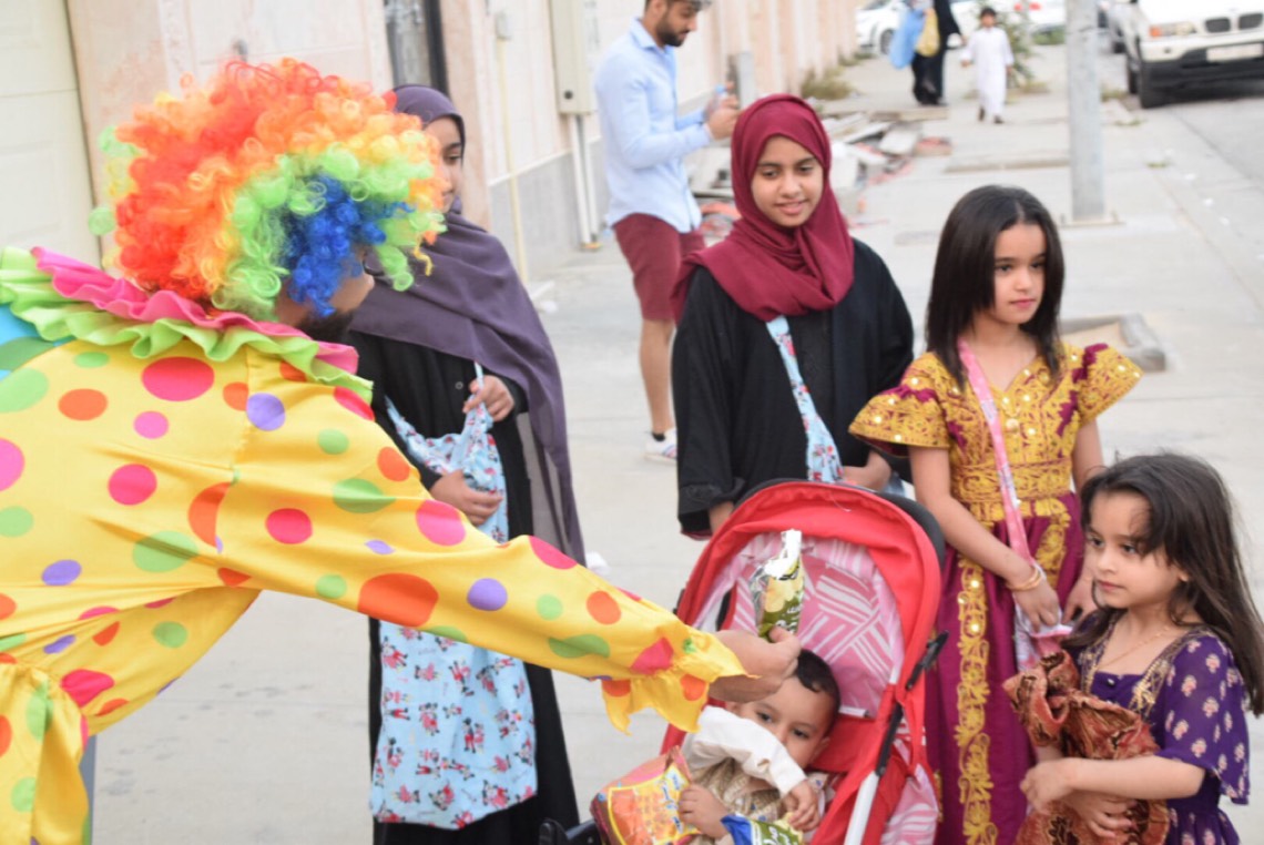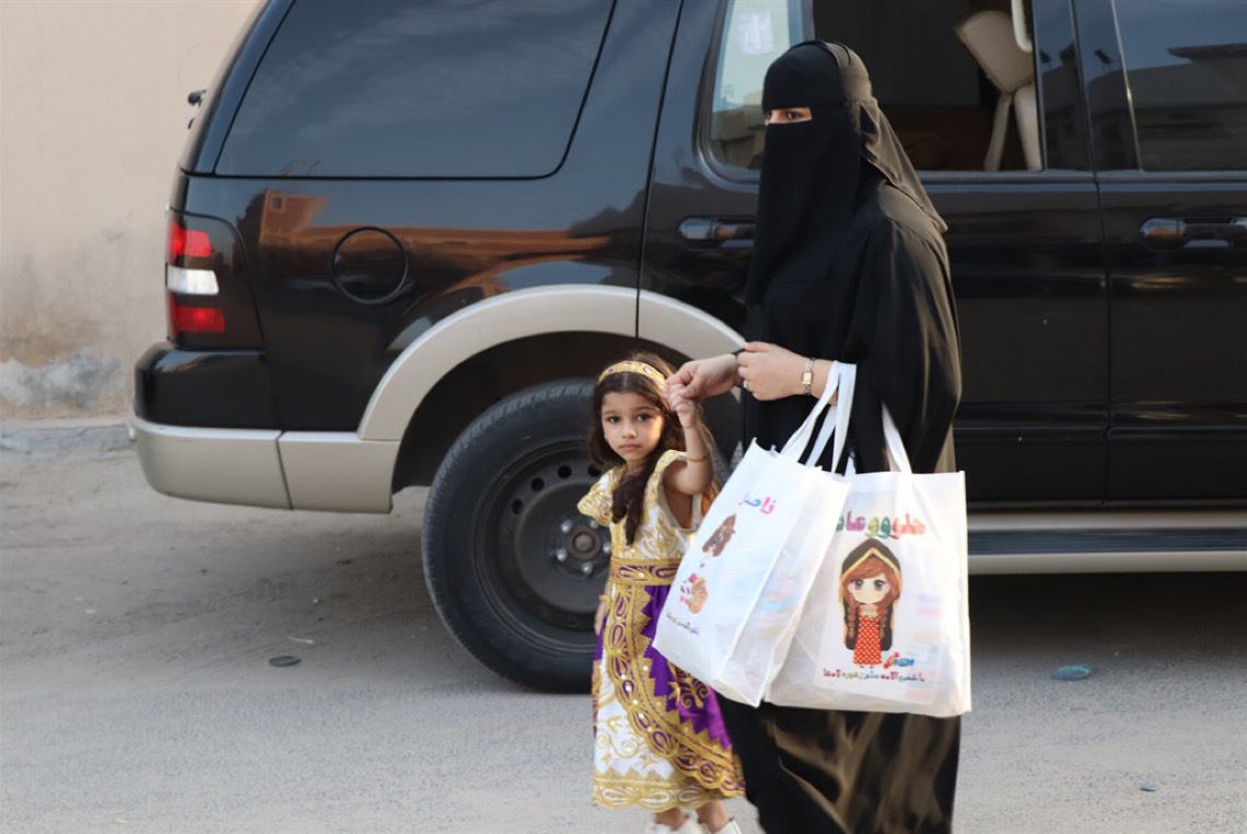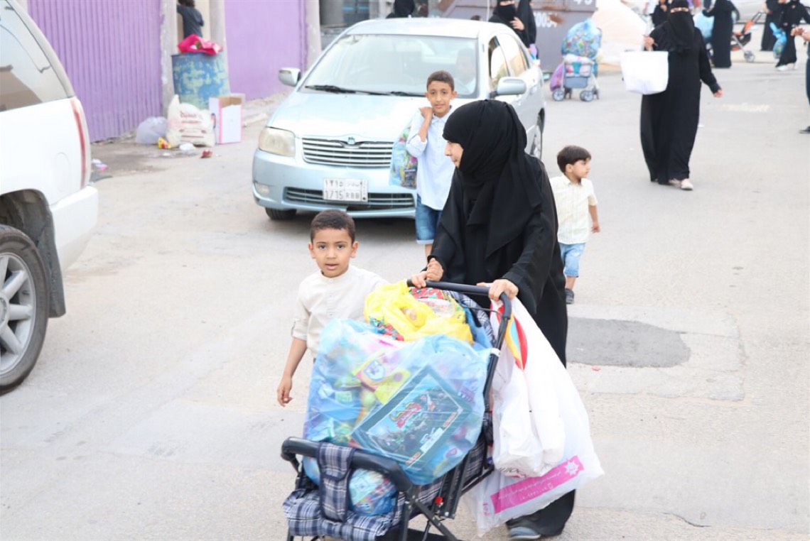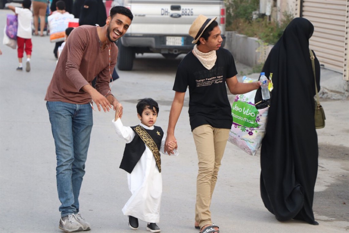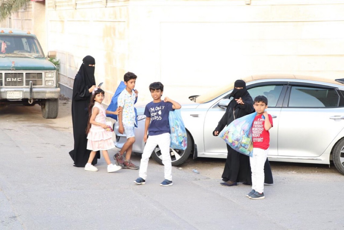 ورصدت ”جهينة الاخبارية“ حشود المحتفلين الذين علب عليهم النساء والأطفال في أجمل حللهم وهم يتنقلون بين المنازل يتلقون الهدايا والحلويات.
