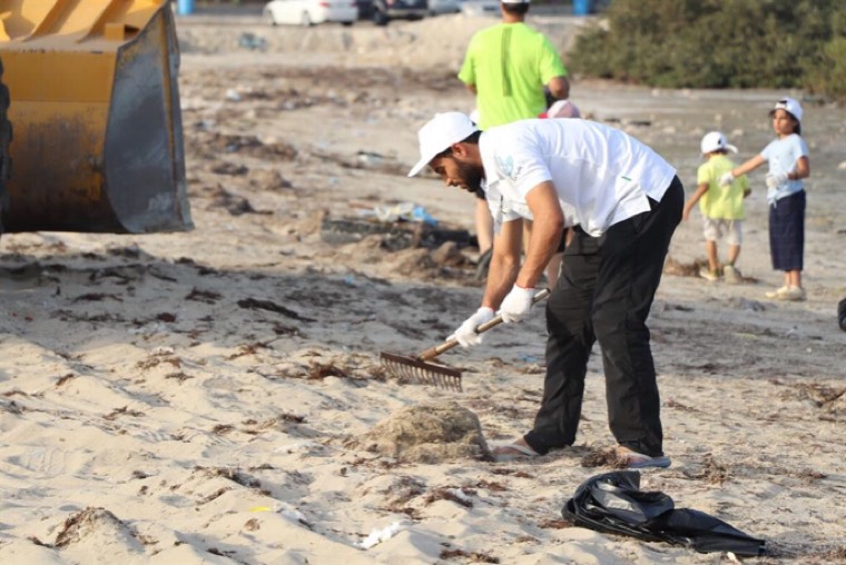 وتواجد المتطوعون في تمام الرابعة بعد الظهر مع عمال البلدية تحت شعار ”نحمي بيتتنا لرفاه مجتمعنا“.