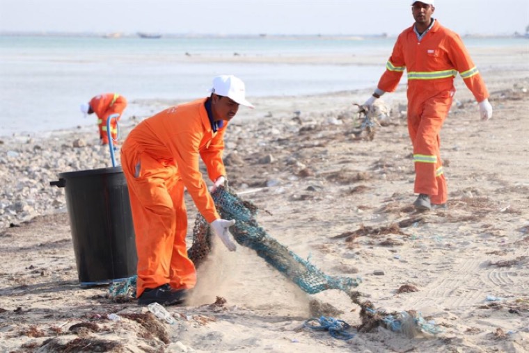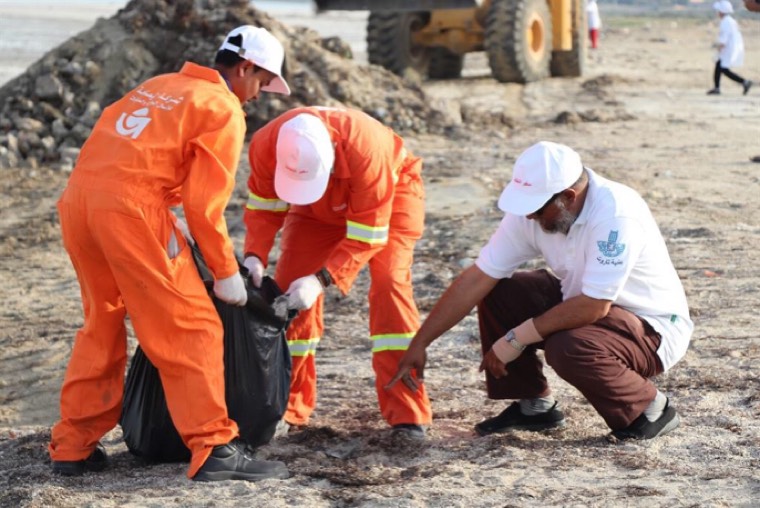 ولم ينحصر إستخراج النفايات بإيدي المتطوعين بل قدمت البلديه عمالة وجرافات لرفع النفايات ضمن السعي للحفاظ على البيئة والثروة السمكية من التلوث.