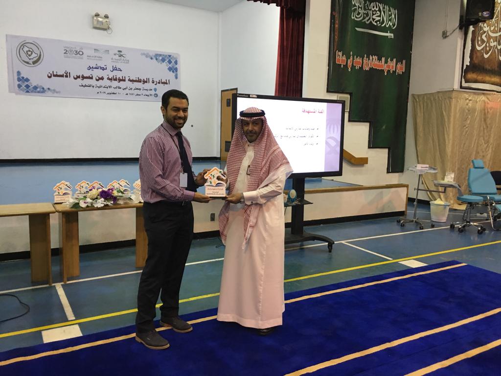 وحضر مدير خدمات طب الأسنان بالتجمع الصحي الأول بالشرقية الدكتور أحمد الكلثم ومدير المراكز الصحية بمحافظة القطيف بالإنابة الدكتور حسين السلمان ومدير مكتب التعليم بالقطيف عبدالكريم العليط وقائد مدرسة جعفر بن أبي طالب ونخبة من المدرسين ومشرفي الصحة.