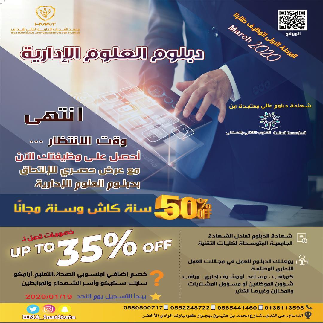احصل على وظيفتك مع عرض حصري للإلتحاق بدبلوم العلوم الأدارية