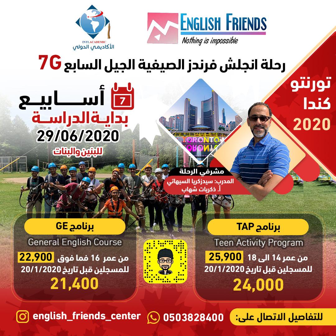 إنضم معنا في رحلة ”انجلش فرندز“ للجيل السابع 7G بالتعاون مع الأكاديمي الدولي إلى كندا 🇨🇦 تورونتو 🇨🇦.