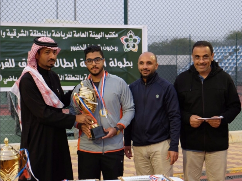 حصد لاعب نادي الابتسام لفئة الشباب عبدالله توفيق المركز الأول في لعبة التنس «كرة المضرب» بعد تغلبه على شقيقه لاعب نادي المحيط قاسم الحميدان الذي حل في المركز الثاني ضمن تصفيات بطولة المملكة لأبطال المناطق لفردي لدرجة الشباب التي اقيمت على ملاعب مدينة الأمير سعود بن جلوي الرياضية بالخبر ونادي الاتفاق بالدمام.