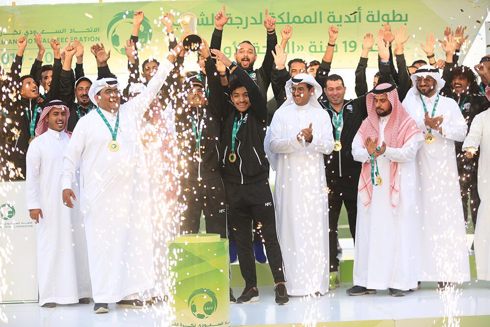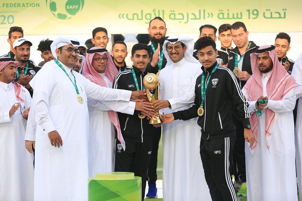 توّج مساء اليوم السبت عضو مجلس إدارة الإتحاد السعودي لكرة القدم المهندس عبد العزيز العفالق بحضور عضو لجنة المسابقات فيصل الخنيفر، ورئيس مجلس الإدارة حمد العريفي ونائبه سامي القنيان وعدد من أعضاء المجلس إدارة فريق كرة القدم لدرجة الشباب بنادي هجر بكأس بطولة المملكة لدرجة الشباب تحت 19 سنة لأندية الدرجة الأولى.