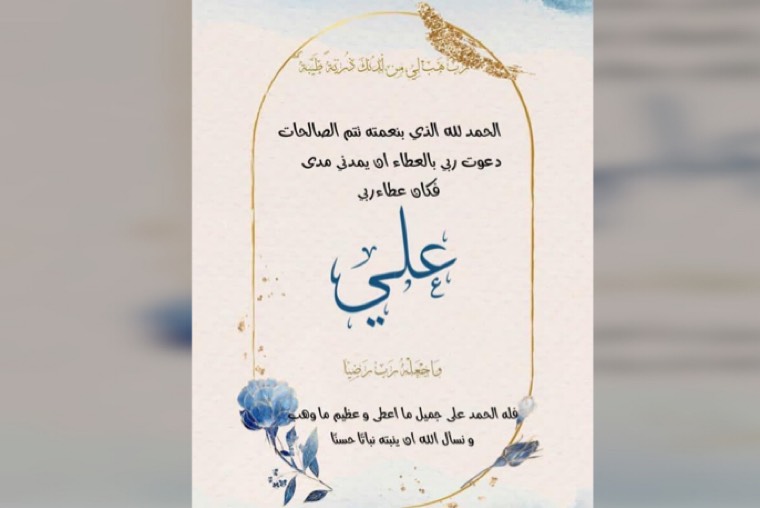 رُزق هاني أحمد آل مهنا من حلة محيش بمولود اتفق وحرمه على تسميته «علي».