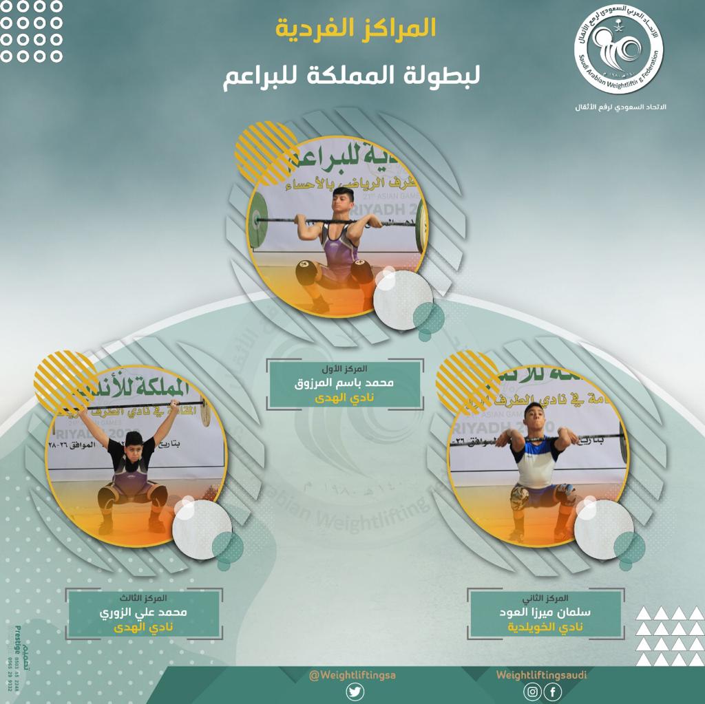 وتحصل رباع نادي الهدى محمد باسم المرزوق على المركز الأول في جائزة أفضل لاعب في المملكة لفئة البراعم.