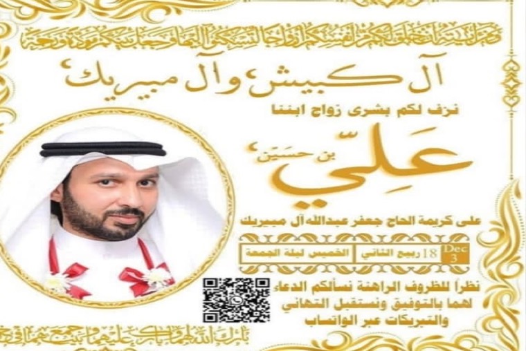تحتفل عائلة آل كبيش وآل مبيريك في سيهات مساء يوم الخميس بزفاف الشاب علي حسين آل كبيش على كريمة الحاج جعفر عبدالله آل مبيريك وسط فرحة الأهل والأصدقاء ومحبي العريسين.