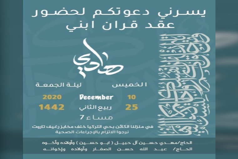تحتفل عائلة آل حبيل والصفار في تاروت مساء يوم الخميس بعقد قران الشاب هادي مهدي حسين آل حبيل على كريمة الحاج عبدالله حسن الصفار وسط فرحة الأهل والأصدقاء ومحبي العريسين.
