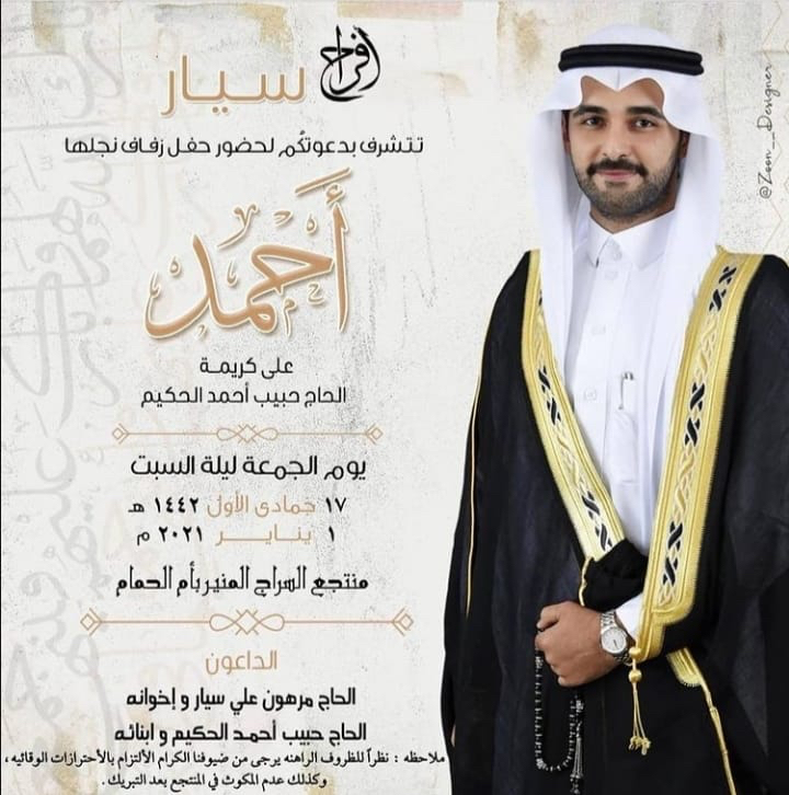 تحتفل عائلة سيار والحكيم في سيهات مساء يوم الجمعة بزفاف الشاب أحمد مرهون علي سيار على كريمة الحاج حبيب أحمد الحكيم في منتجع السراج المنير بأم الحمام وسط فرحة الأهل والأصدقاء ومحبي العريسين.