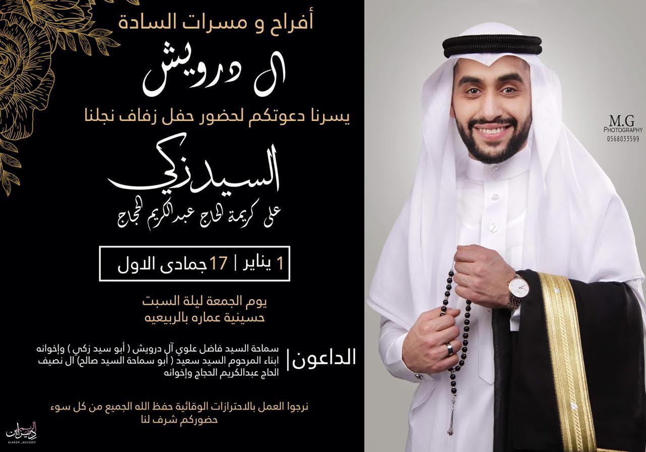 تحتفل عائلة آل درويش والحجاج في الربيعية مساء يوم الجمعة بزفاف الشاب السيد زكي نجل سماحة السيد فاضل علوي آل درويش على كريمة الحاج عبد الكريم الحجاج في حسينية عمارة بالربيعية وسط فرحة الأهل والأصدقاء ومحبي العريسين.