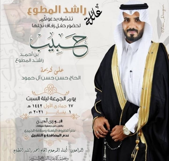 احتفلت عائلة المطوع وآل حمود في سيهات مساء يوم الجمعة بزفاف الشاب حبيب أحمد راشد المطوع على كريمة الحاج حسن حسن آل حمود في قبو زين الدين وسط فرحة الأهل والأصدقاء ومحبي العريسين.